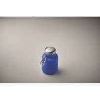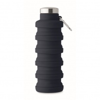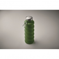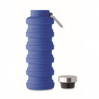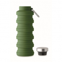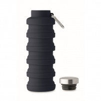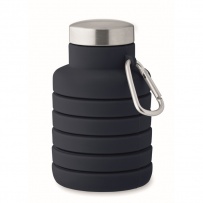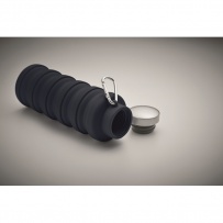 Collapsible silicone bottle with stainless steel lid and aluminium carabiner. The carabiner is not for climbing (non-professional use). Capacity: 500 ml.