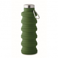 Składana silikonowa butelka z pokrywką ze stali nierdzewnej i z aluminiowym karabińczykiem. Karabińczyk nie jest przeznaczony do wspinaczki (nie do użytku profesjonalnego). Pojemność: 500 ml.