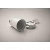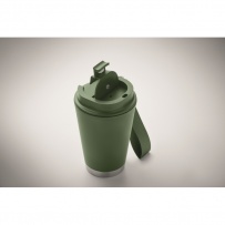 Gobelet ? double paroi intérienr en PP, extérieur en PP recyclé, détails en acier inoxydable recyclé et bracelet en RPET. Capacité : 300 ml.