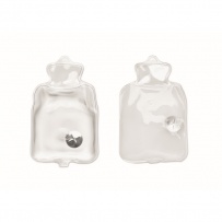 Ogrzewacz do rąk z dzianiny poliestrowej. Zawiera podkładkę termiczną z PVC aktywowaną przez naciśnięcie metalowej płytki wewnątrz. Wielokrotnego użytku poprzez umieszczenie podkładki w gorącej wodzie.