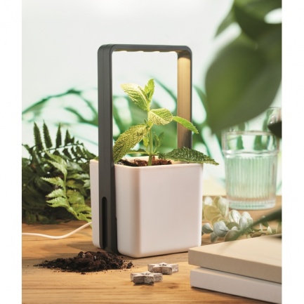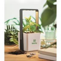 Indoor garden with 4 LED grow light in PP and ABS. Includes 1 pot, 1 filter/ reservoir and 1 USB cable, A/C adapter. Low voltage input: 5V. Not suitable for sale in the UK.