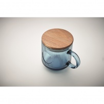 Mug en verre strié avec couvercle en acacia. 300 ml. FSC-certified | FSC 100%, W16.3, FSC-C213206
