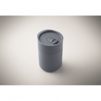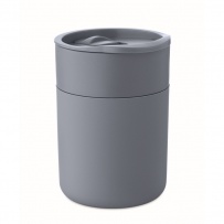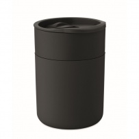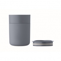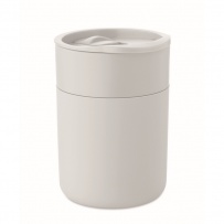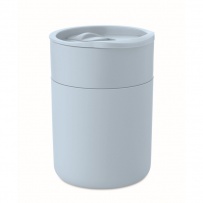 Kubek z PP z silikonową osłoną i przesuwaną pokrywką z PP. Pojemność: 330 ml. Ponieważ jest to kubek jednościenny, nadal może dochodzić do wymiany ciepła.