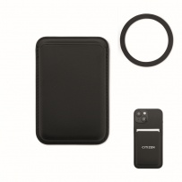 Magnetic PU leather credit card holder (for 3 cards). It includes an additional metal ring.