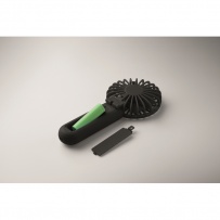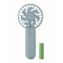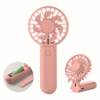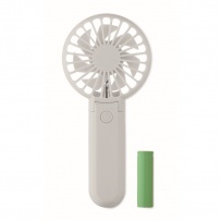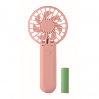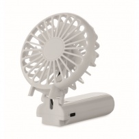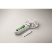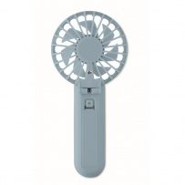 Portable foldable fan in ABS with 3 speed settings. Can be used as handheld or desk fan. Includes 1 replaceable and rechargeable 14500 Lithium battery 500 mAh.