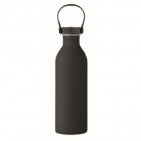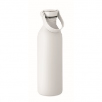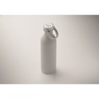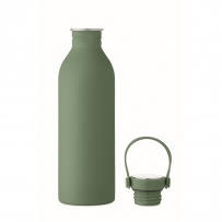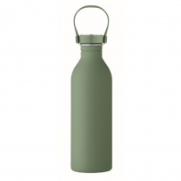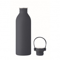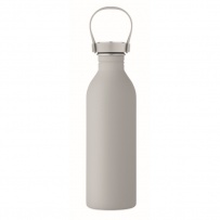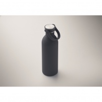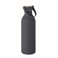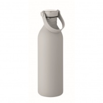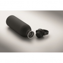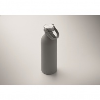 Einwandige Flasche aus 90 % recyceltem Edelstahl und 10 % Edelstahl mit gummiertem Finish. Inkl. Deckel aus PP/Edelstahl und Silikonhenkel. Füllmenge: 500 ml.
