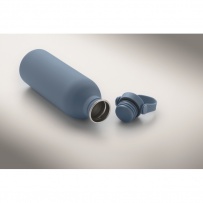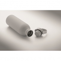 Bouteille ? simple paroi en acier inoxydable recyclé (90 %) et en acier inoxydable (10 %) avec finition en caoutchouc. Couvercle en PP et SS avec poignée en silicone. Capacité : 500 ml.